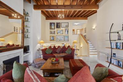 Inside, the living room features an impressive vaulted ceiling with a fireplace, creating a wonderful sense of space and warmth while enhancing the overall character of the home. Elegant marble floors run throughout, adding a timeless and refined finish.The villa also benefits from a large, well-appointed kitchen, offering ample workspace and storage, ideal for both everyday living and entertaining.
