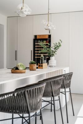 Spread across a single floor of 255 m², it combines a cosy home atmosphere with immense windows that blend the indoors with the surrounding environment. The vast living and dining area integrates with a fully fitted kitchen, where cooking with a view has never been such a pleasure. The spacious countertop becomes a central gathering point.