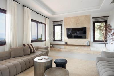 Inside, the architecture reveals a seamless interplay of light and space. Sunlight pours through expansive windows, accentuating lofty ceilings and framing sweeping views of the Mediterranean. Designer furnishings, chosen for their craftsmanship and timeless elegance, define each room with sophistication and comfort. Two bioethanol fireplacesâin the living room and master suiteâintroduce a soft, flickering glow, adding warmth and intimacy to the contemporary design.