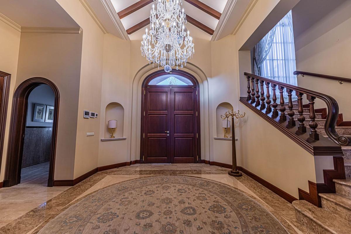 Luxury andalusian style villa that resides magnificently in one of the most prestigious and sought-after urbanizations in Marbella, Guadalmina Baja, only 100 meters from the beach and 5 minutes from Puerto Banus. The highest quality materials have been... Luxury andalusian style villa that resides magnificently in one of the most prestigious and sought-after urbanizations in Marbella, Guadalmina Baja, only 100 meters from the beach and 5 minutes from Puerto Banus. The highest quality materials have been used in the design and construction of this elegant 8-bedroom home. The natural light throughout is accentuated by high ceilings and a multi-level floor plan. The villa offers a beautiful entrance hall leading to an Andalusian patio, a large fully fitted kitchen, 2 en-suite bedrooms, an elegant formal dining room and an expansive living area that leads to the covered terraces and lavish gardens. The first floor offers 3 large en-suite bedrooms and an elegant master suite with his and hers walk-in wardrobe and a private terrace with garden & partial sea views. This extraordinary property has been especially designed for a luxury lifestyle and offers a dream entertainment area that includes a pool billiard room, a fully equipped fitness suite, a Spa with sauna, jacuzzi, Turkish bath and ice fountain, a cinema room and a signature wine cellar, making this a haven of recreation. The manicured tropical gardens feature a large swimming pool, a small lake with waterfall, and a summer pergola under mature palm trees. The villa enjoys absolute privacy. Other features of this extraordinary property include: garage for 6+ cars, private lift, under-floor heating throughout, domotic system, solar panels, separate staff apartment, etc.