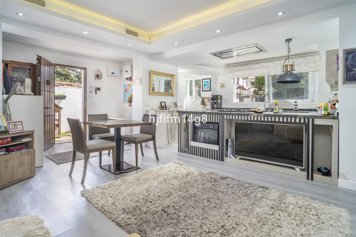 Set on a generous 426 m² plot with fruit trees, a private swimming pool, and a cozy chill-out area, this home is designed for enjoying Marbella's outdoor lifestyle with family and friends. The 138 m² villa is distributed across two levels. The ground floor features a spacious open-plan kitchen connected to a bright living and dining room, a full bathroom, and two comfortable bedrooms.