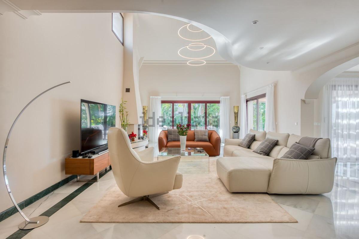 Elegant five bedroom luxury villa in Los Flamingos. This impeccably presented villa brings together a combination of facilities, a children's garden and a pool area. The villa has underfloor heating throughout the house, marble bathrooms and floors,... Elegant five bedroom luxury villa in Los Flamingos. This impeccably presented villa brings together a combination of facilities, a children's garden and a pool area. The villa has underfloor heating throughout the house, marble bathrooms and floors, an independent Airzone system for each room. Ground floor with entrance hall, large living room with fireplace and large terrace, kitchen with dining room, 2 bedrooms and 2 bathrooms and guest toilet. First floor with master bedroom with fantastic views, dressing room and bathroom. The basement has natural light and a separate entrance. It offers a living room with an open kitchen, 2 bedrooms, 1 shared bathroom and a laundry area. Large garage for 4 cars. The privileged location guarantees all the amenities, shops, restaurants, banks, 4-5 star hotels close at hand, golf courses, easy access to beaches, walks and play areas for children.