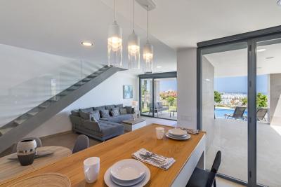 This stunning single-story villa boasts four spacious bedrooms, each with fitted wardrobes, electric blinds, and individual air conditioning control. The three elegant bathrooms feature the comfort of underfloor heating.