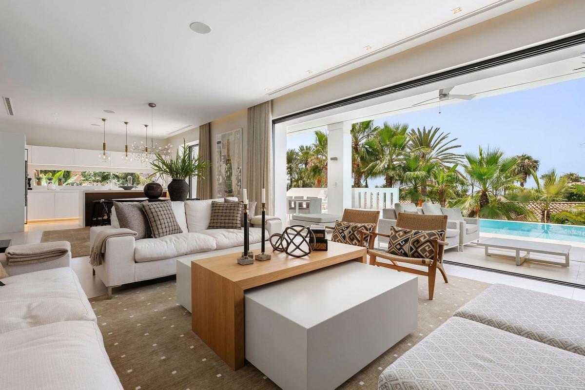 A stunning modern luxury Villa in Nagueles, Marbella Golden Mile offering easy access to Marbella centre and just 10 minutes' drive from Puerto Banus. The property is built to the highest specifications with great attention to detail and using top... A stunning modern luxury Villa in Nagueles, Marbella Golden Mile offering easy access to Marbella centre and just 10 minutes' drive from Puerto Banus. The property is built to the highest specifications with great attention to detail and using top quality materials and installations throughout. The villa is distributed over three levels all connected with an elevator including basement area, plus a spacious solarium roof terrace. The basement level includes private garage with turntable mechanism, entertainment area with TV lounge, a full-size bar, lounge; good sized staff/guest bedroom with en-suite bathroom, laundry room, guest WC and technical room. The entrance level comprises of entrance hall, guest WC, one bedroom suite, spacious lounge, an office, dining area and open plan kitchen which opens out onto the large terrace leading to the private pool. The master bedroom is located on the first floor and includes a large en-suite bathroom and dressing room. This floor also includes 2 additional bedroom suites. The rooftop terrace of 98m² offers panoramic sea and mountain views and is ideal for outdoor entertaining and also includes a chill-out area, bathroom and storage.