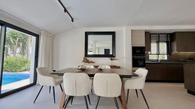 The ground floor features a... An exceptional villa for sale in Altos del Rodeo, offering five bedrooms and four bathrooms with a desirable south-facing orientation. The villa was fully renovated in 2025. The property is distributed over three levels.