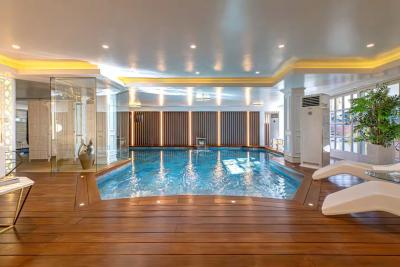 ⢠Private wellness center with indoor pool, sauna, and gym