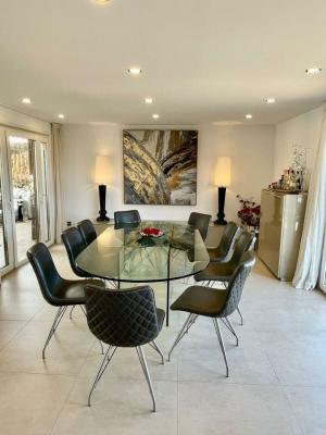 The lower level opens onto a beautifully maintained garden with a lush lawn, where you'll find another open-plan living, dining, and kitchen area. Of the five generous en-suite bedrooms on this floor, three offer direct access to the garden, blending indoor and outdoor living. These suites are exceptionally spacious and include additional lounge areas for relaxation, creating a self-sufficient and versatile living space.