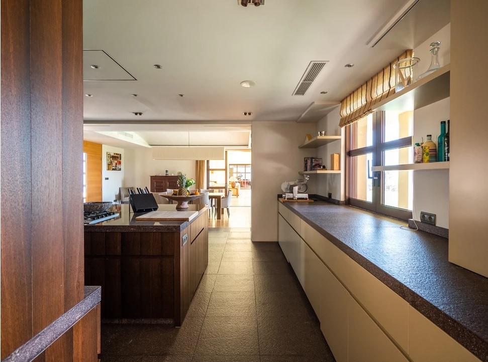 Designed and decorated by renowned architects and designers, it comprises, on the ground floor: a long corridor/gallery connecting the east wing with the tremendous living area and the study to the west wing's dining area. Sliding doors separating the dining room and the spacious kitchen with top-of-the-line equipment. Behind is the wet kitchen with a walk-in freezer, larder room, separate laundry room and the designed guest washroom.