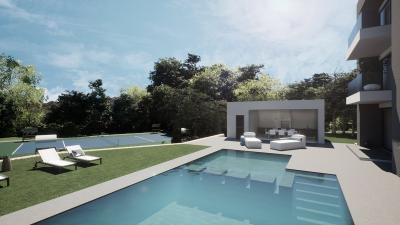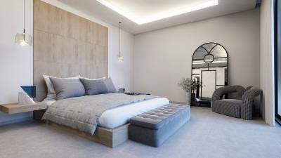 Outside, the gardens offer extensive leisure spaces, with room for either a padel or tennis court alongside the large terraces and a 36 m² pool house. The villa's sleek design is highlighted by expansive glazing on the south-facing façade, blending indoor and outdoor spaces to perfection.