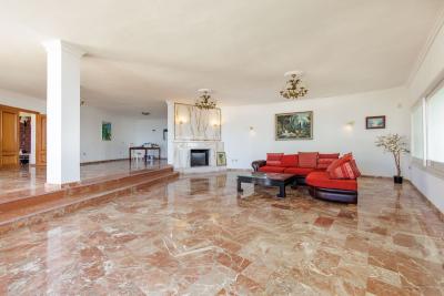 As you enter the grand hallway, you are immediately greeted by panoramic, views of the sparkling sea and majestic mountains that surround this exclusive property. To your left, you'll find two expansive living rooms, each featuring a stunning marble fireplace, offering a sophisticated and inviting atmosphere perfect for both relaxation and entertainment. The home boasts two massive kitchens, ideal for culinary enthusiasts, along with two spacious store rooms and a formal dining room designed for lavish gatherings.