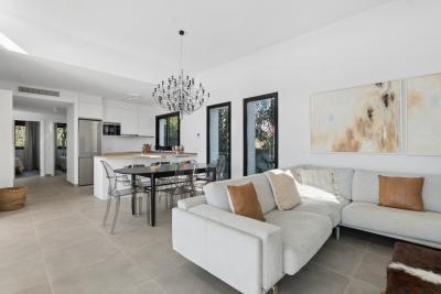 Built on a 487 m² plot, the house has a total built surface of 310 m², including an 86 m² raw basement with huge potential, a 65 m² garage for two cars, and the remaining space designed as bright, comfortable living areas on the upper level. The main floor features open-plan interiors with direct access to the terrace and garden, making the most of the Mediterranean light and climate.
