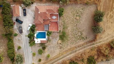 The property sits on a generous, completely flat plot of just over 2,000 m². Surrounding the swimming pool are several terraces, **each offering breathtaking views** over the rolling Andalusian landscape. Whether you're enjoying your morning coffee at sunrise or unwinding under the stars in the evening, the views are nothing short of spectacular.