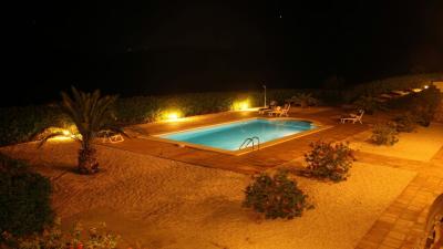 The lower apartment offers a spacious open-plan living area combining living room, dining space and kitchen, along with two bedroomsâeach with its own ensuite bathroomâand an additional guest toilet. Large double doors from both the living area and bedrooms lead directly out to the private swimming pool terrace, creating a seamless indoor-outdoor living experience.