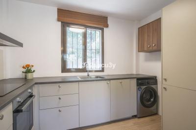 The property offers a bright living-dining room with an open kitchen, a private garden of 45 m² with a porch area, and a panoramic rooftop solarium, perfect for enjoying the sun and the views of the natural surroundings.