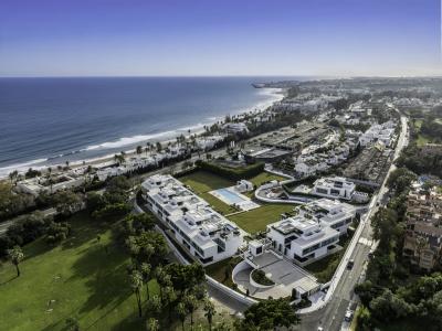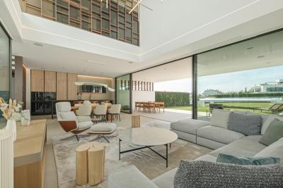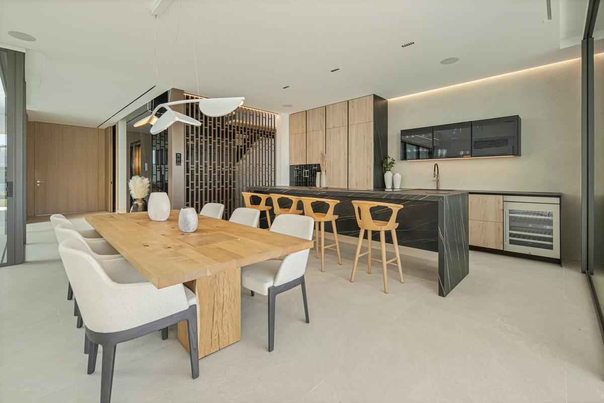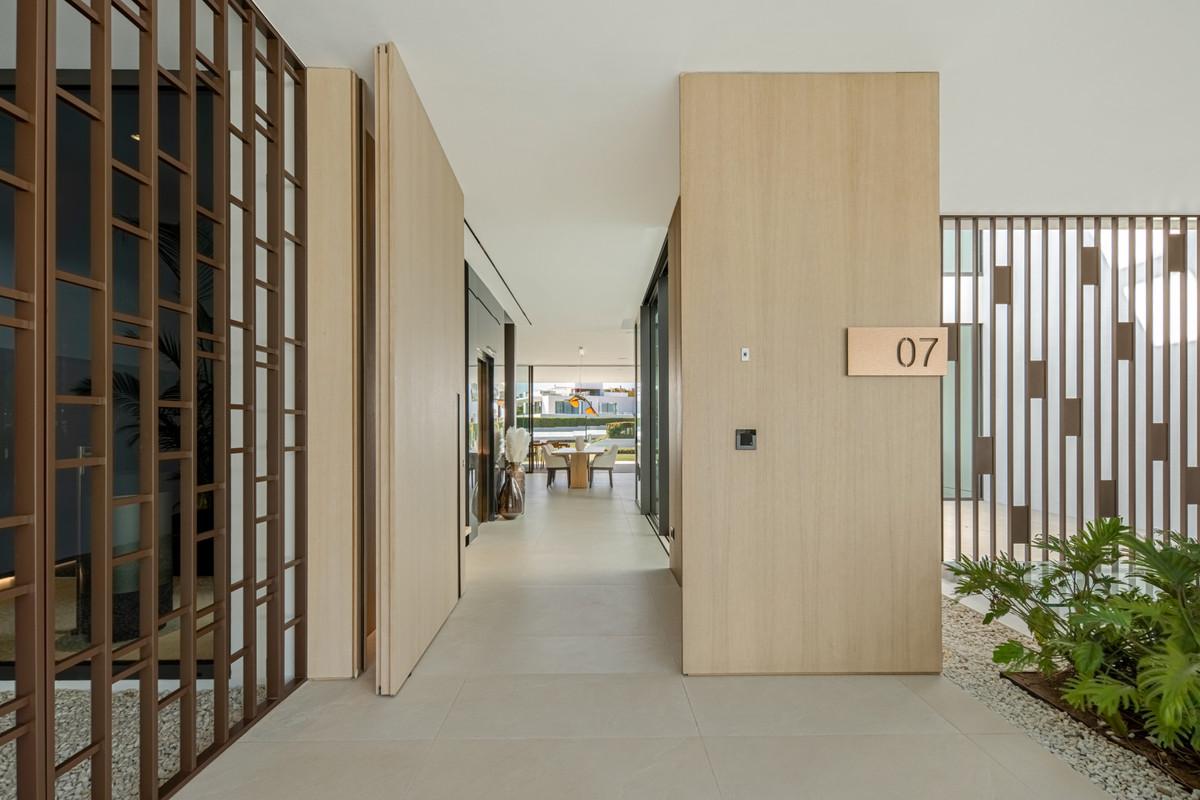 Above it all, the rooftop terrace becomes the setting that quietly defines the home. A private pool runs along the edge with space for dining, lounging and evening gatherings beneath a pergola, opening to views across the Golden Mile and the Mediterranean. Set within a secure boutique community and within walking distance of Puente Romano's restaurants, beach clubs and promenade, Villa 7 balances privacy with immediate access to Marbella's most social stretch of coastline.